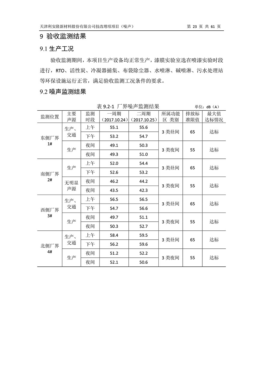 天津利安隆新材料股份有限公司技改增项项目竣工验收监测报告(噪声)公示版